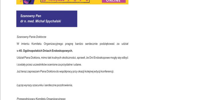 Katowickie Dni Endoskopowe to jedno z ważniejszych wydarzeń gastroenterologicznych w Polsce. Było mi niezwykle miło przyjąć zaproszenie do aktywnego udziału w tym zjeździe. Wygłosiłem wykład pt. „Bezpieczeństwo endoskopowych zabiegów …